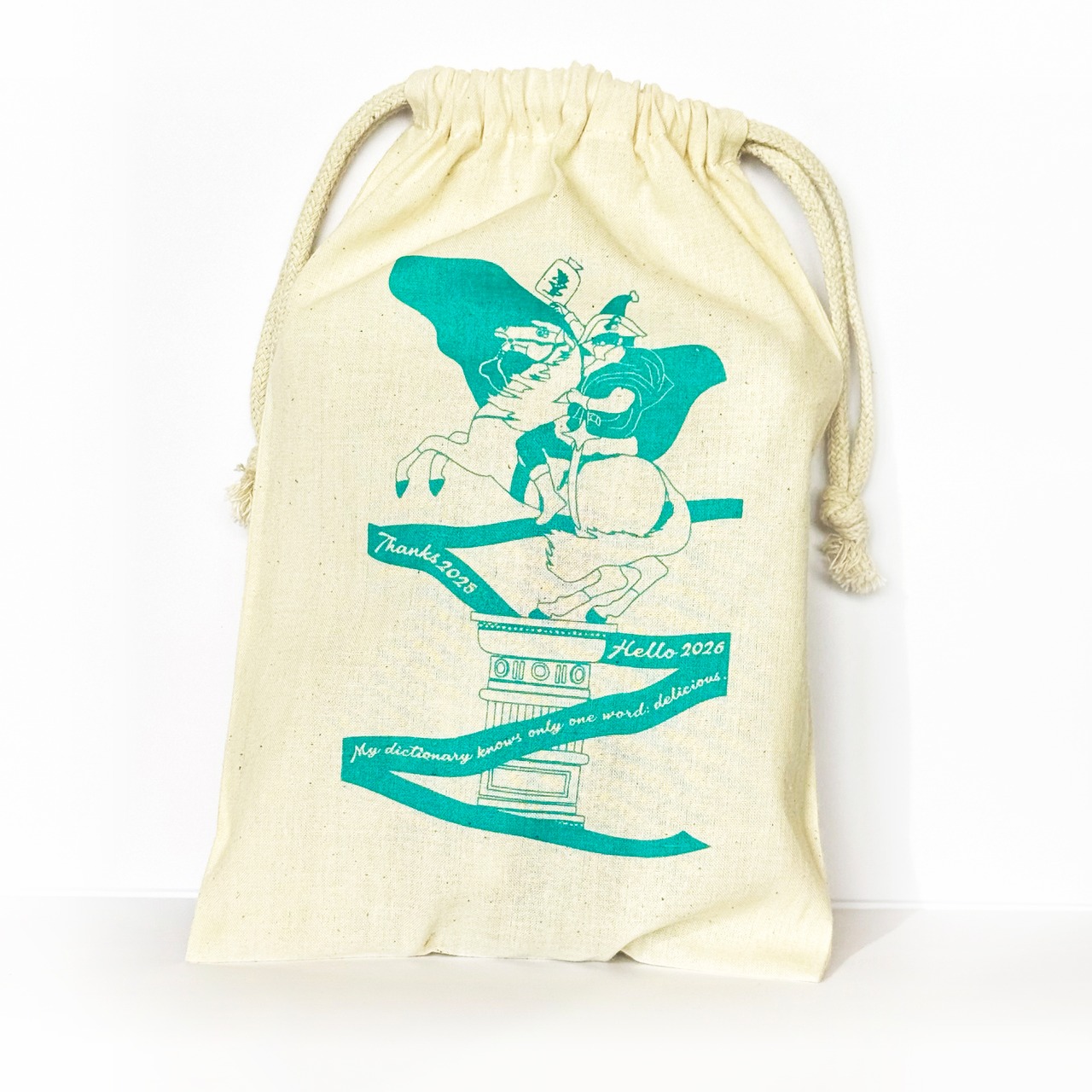 2026年の干支、馬に乗った英雄サンタの巾着入り。